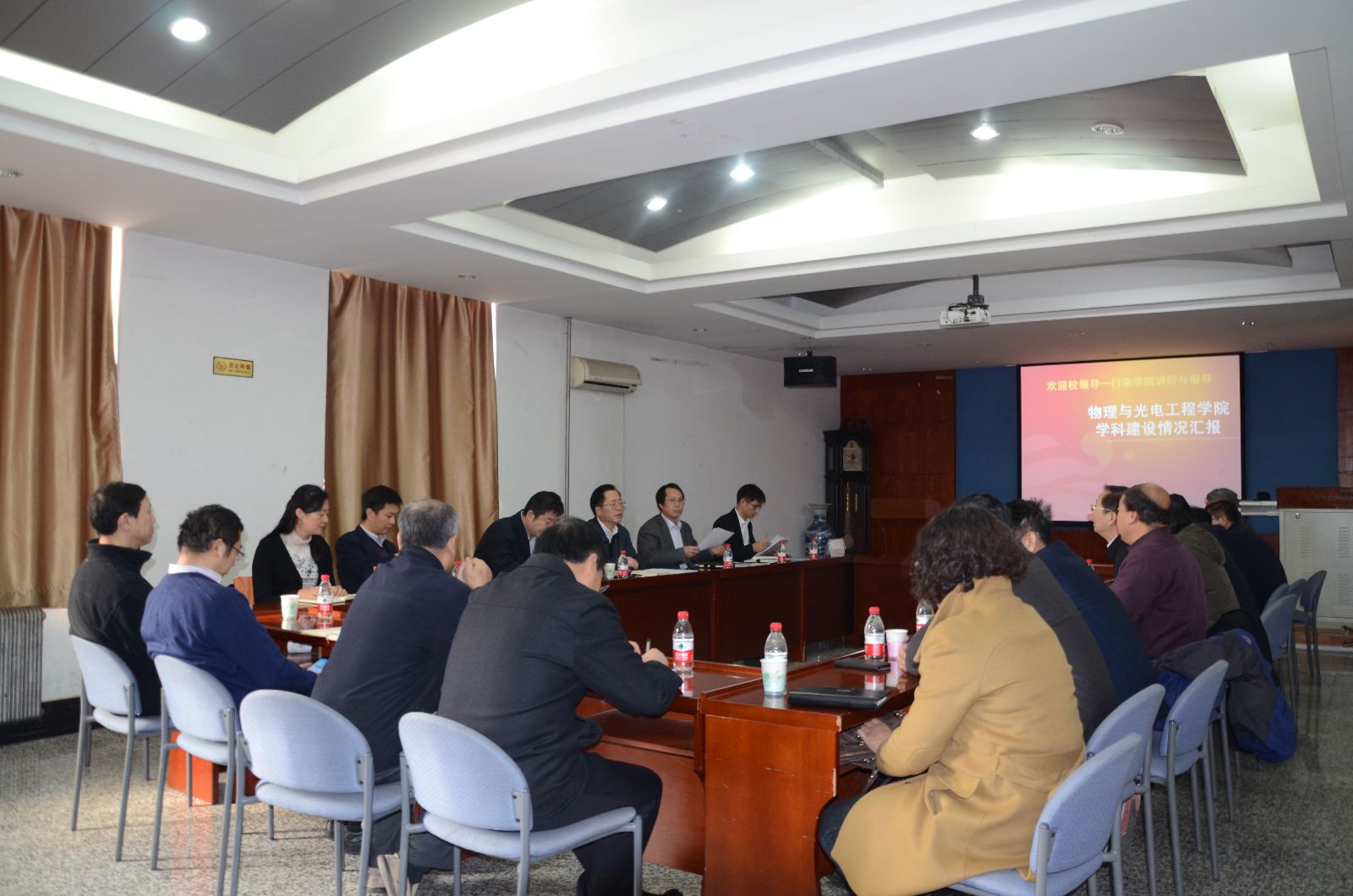 2015年1月13日,大连理工大学副校长曲景平在学科办全体同志的陪同下,来到开云手机站登录入口三楼会议室就争创一流大学学科建设工作进行调研。参加本次调研会议的有物理与光电工程学院党政班子主要成员、一级二级学科负责人、学术委员会主席、学位评定分委员会主席等以及数学科学学院相关领导及负责人。