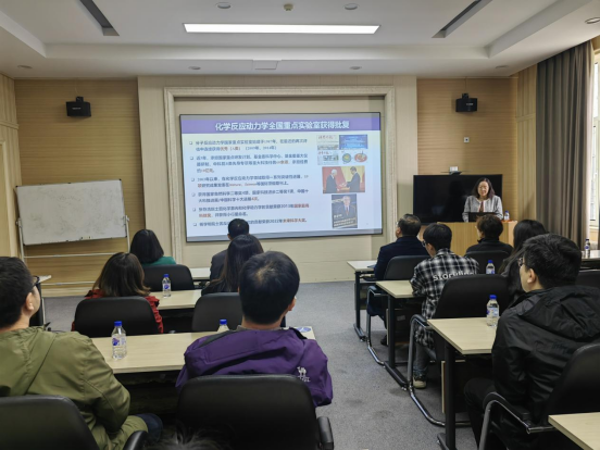 活动首站是重点实验室介绍及参观学习。首先由化学反应动力学全国重点实验室第二党支部书记刘舒详细介绍了实验室在化学反应动力学领域的重大突破及服务国家战略需求的科研布局。在实验室相关负责人的引导下,全体人员实地考察了化学反应动力学领域的前沿科研成果及核心技术平台。在负责人的细致讲解下,大家参观了包括基元反应动力学、表面反应动力学、超快时间分辨光谱与动力学在内的多个实验室。同志们纷纷表示,科研工作始终要以国家战略需求为指引,将党性教育融入科研实践,勇担科技报国使命,在科研工作中争创一流成果。
