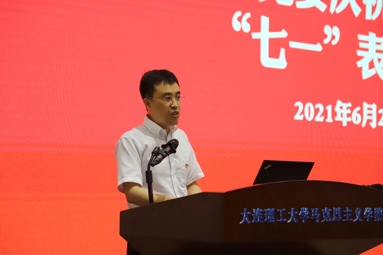 为迎接中国共产党成立100周年,6月29日下午,开云手机站登录入口党委在马克思主义学院报告厅召开“七一”表彰大会。学院党委班子、党委委员,受表彰对象和近期新发展党员参会,学院党委副书记兼副院长于艳敏主持大会。