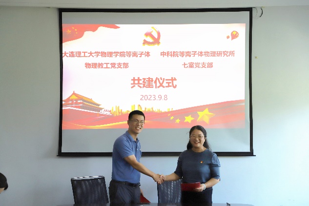 随后,袁旗平从等离子体所的托卡马克控制系统研发、总体架构设计以及部署应用等方面对计算机应用研究室做了总体的介绍,另着重介绍了党支部基本情况和支部建设主要工作。桑超峰介绍了我校等离子体物理学科的发展历史、总体情况、主要研究方向、团队组成及发展现状,介绍了等离子体物理教工党支部的基本情况、成员特点和党建活动情况。此后双方就教师党支部建设经验、理论学习心得,基础学科发展、科研项目合作等议题展开了充分的交流讨论。双方一致同意今后将进一步促进党建与业务深度融合,在会上签订了党支部共建协议书。