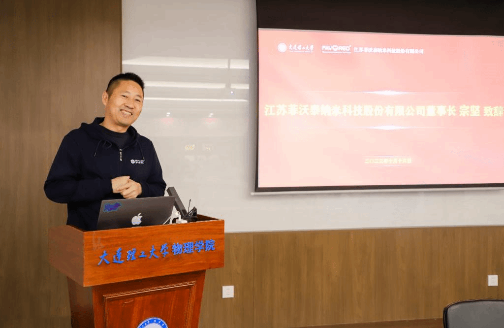 朱方伟代表学校向菲沃泰及其董事长宗坚的到来致以热烈的欢迎和诚挚的感谢。朱方伟表示,菲沃泰出资设立“菲沃泰奖学金”是对学校育人事业的肯定和我校教育事业发展的信任和支持,更是优秀企业诠释价值观、勇担社会责任的体现。学校也定将贯彻党的教育方针,以优异的办学成绩回应社会的关切与期待。鼓励同学们在大工的沃土上明方向、练本领,以积极的态度和不懈的奋斗来回报祖国、社会和学校。
