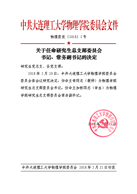 物理委发〔2018〕2号-关于任命研究生总支部委员会书记、常务副书记的决定.pdf