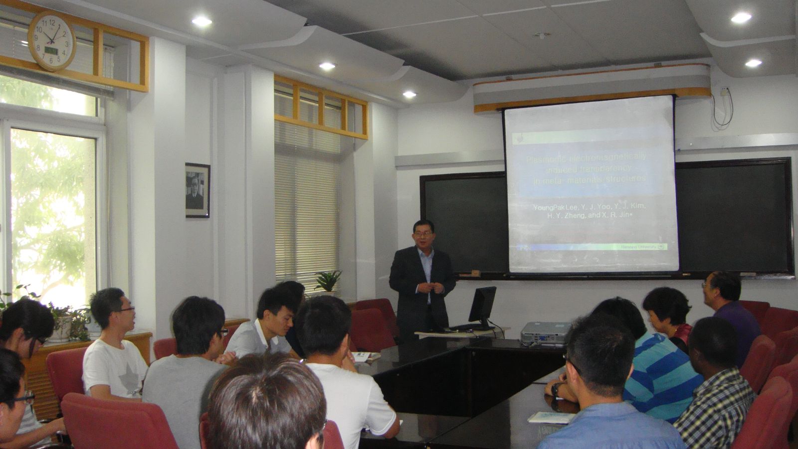 李英白教授是韩国汉阳大学量子光功能物性研究中心主任、韩国科学院院士、韩国科学与教育联合协会主席、曾担任韩国物理学会主席(2009-2010)。李英白教授在超材料、自旋电子学及表面界面物理等领域取得了卓越的研究成果,并于2007年被韩国联合通讯社誉为“21世纪韩国科学家代表”。早在上世纪90年代,李英白教授就与我校的三束材料改性重点实验室建立了学术联系,曾多次来访我校,并在中韩学术交流方面做出卓越贡献。