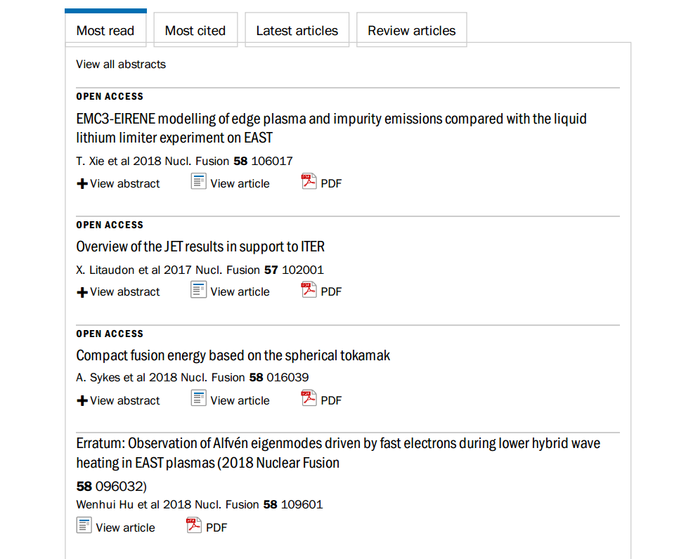 《Nuclear Fusion》期刊是世界公认的核聚变研究权威期刊(Nuclear Fusion is the acknowledged world-leading journal specializing in fusion)。研究范围包括:与核聚变相关的理论模拟、实验诊断、工程技术等方面的物理与材料科学研究。