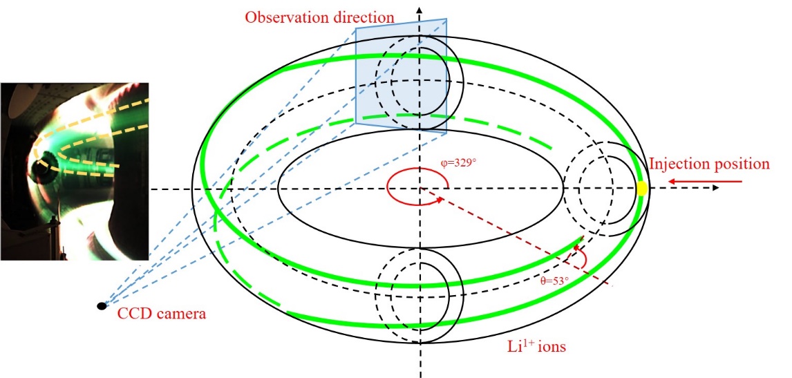 1 弹丸粒子空间分布和EAST装置上CCD摄像机照片的对比图
