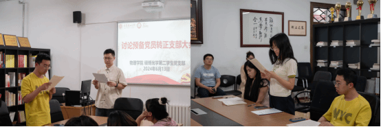 为扎实做好发展党员工作,壮大党员队伍,增强支部凝聚力和战斗力,硕博光学第二学生党支部于2024年6月13日在物理楼422室成功召开党员大会。本次会议的主要内容是讨论张豪等三位同志预备党员转正问题。会议由党支部书记田杰同志主持,支部全体党员参会。