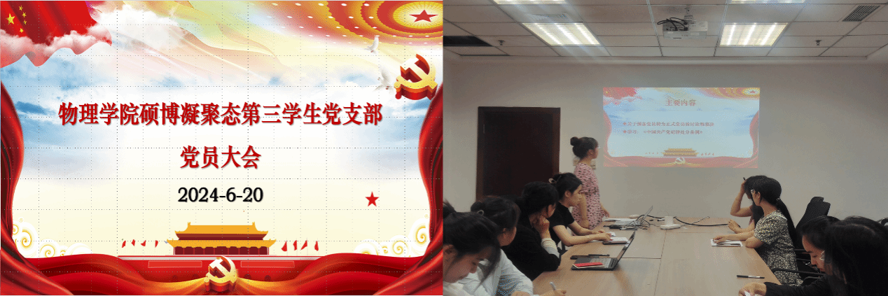 为全面落实学校和学院党委对开展党纪学习教育的部署,2024年6月20日,开云手机站登录入口硕博凝聚态第三学生党支部在科技园写字楼C座510会议室召开党员大会暨“学条例,正身行”主题党日活动,本次活动由党支部书记赵博同志主持,支部全体党员积极参与。