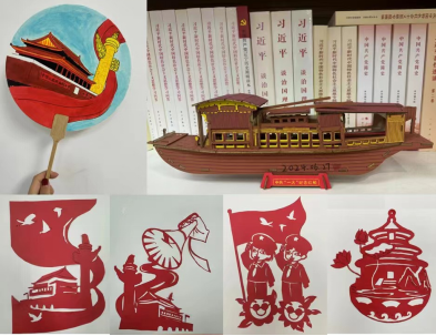 党员们将心意汇聚于刀尖,将热诚展现在灵巧的双手上。本次特殊的手工课有“红色剪纸”“红船拼接”“扇面涂鸦”三个板块,每个党员按照兴趣爱好自由选择一个或多个板块进行创作。大家相互学习、共同进步,一边交流手工的技巧,一边将爱党情怀融入创作之中。随着时间的流逝,一幅幅精美的剪纸图案逐渐成型,红船模型也初具轮廓,扇面上,天安门广场的金顶红墙在阳光下熠熠生辉。