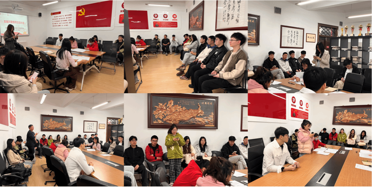 大会第一项,发展对象推荐会。首先,由入党积极分子陈泳岐同志、高绍博同志以及姚思远同志的联系培养人分别向党组织介绍三位同志在成为入党积极分子期间的表现情况,并对其能否被确立为发展对象表明意见。随后,与会同志分别对三位同志在成为入党积极分子期间的表现进行总结评价。在此之后,进行无记名投票表决。支委会推荐周冰同志和李婧毓同志分别为监票人和计票人。表决结果为一致同意确定陈泳岐同志、高绍博同志及姚思远同志为发展对象。