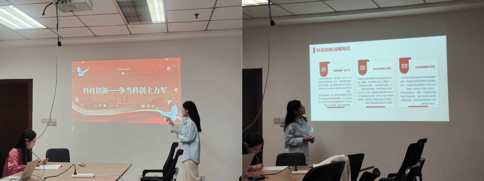 会议第三项,由团支部书记田冰同志带领学习习近平总书记关于科技创新的重要论述。科技是第一生产力,创新是引领发展的第一动力,青年党员要勇担科技报国使命,积极投身科技前沿。田冰同志还带领大家回顾了我国在航天、人工智能等领域取得的重大成果,同时剖析当前面临的“卡脖子”技术难题、人才储备短板等挑战。大家深刻认识到科技创新任重道远,进一步坚定了服务国家发展战略、在科研中勇攀高峰的理想信念。