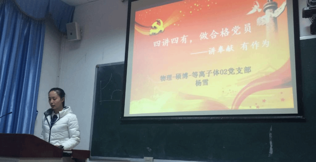 2016年11月10日,为深入贯彻落实“两学一做”系列主题学习,加强支部思想建设,积极投身学习教育活动,真正做一个“忠诚、干净、担当”的合格党员,物理硕博等离子体第二学生党支部于系楼425会议室,开展了以“讲奉献,有作为”为主题的专题学习。本次会议由支部书记胡艳婷主持,支部全体党员同志参加了此次学习。五名党员同志走上讲台,为支部成员做了关于“讲奉献,有作为”的专题党课。