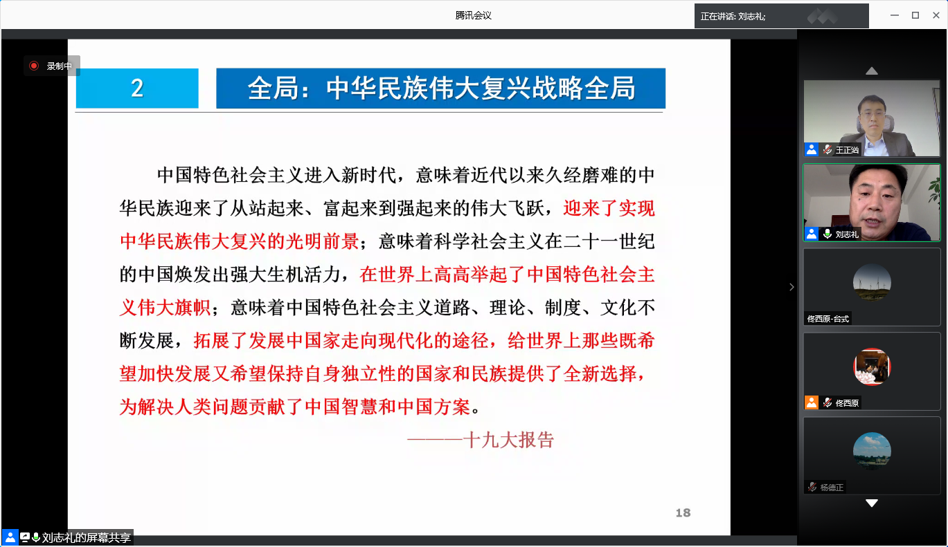 11月27日,开云手机站登录入口党委邀请我校马克思主义学院副院长刘志礼教授,为学院师生党员、发展对象、积极分子宣讲党的十九届五中全会精神。讲座通过腾讯会议平台在线召开,学院党委书记王正汹主持会议,200余人上线学习。