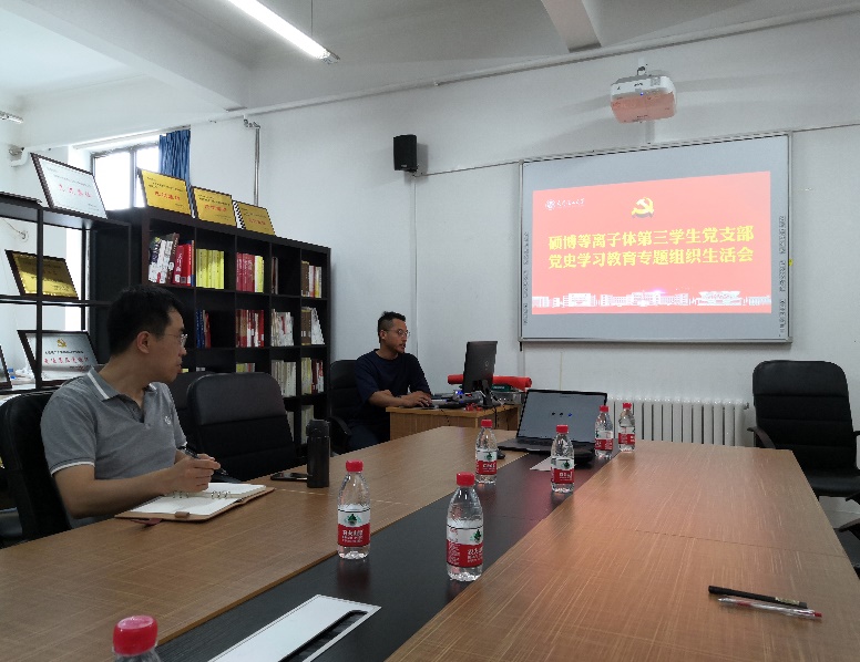 为深入学习贯彻落实习近平总书记在庆祝中国共产党成立100周年大会上的重要讲话精神,巩固党史学习教育在全体支部党员的学习效果。7月20日上午,开云手机站登录入口硕博等离子体第三学生党支部党史学习教育专题组织生活会顺利召开。