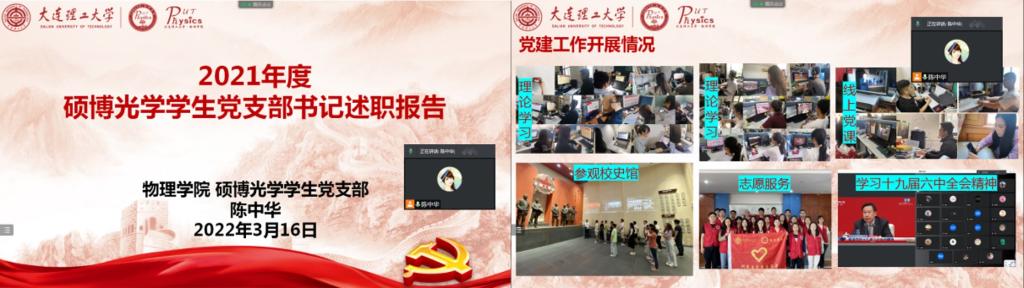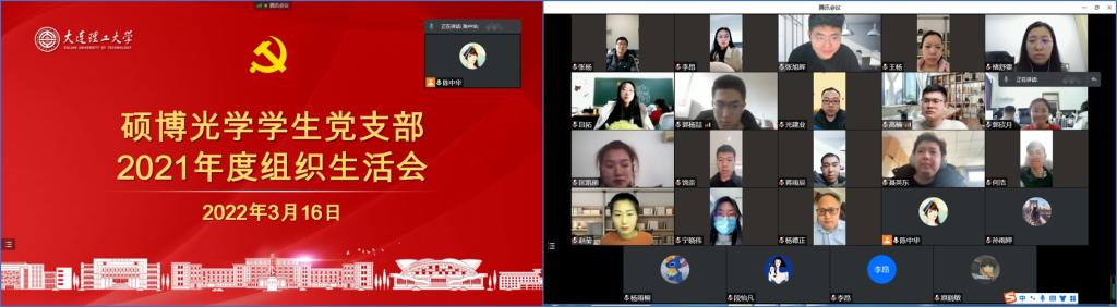 按照大连理工大学党委和开云手机站登录入口党委的统一部署,结合学校疫情防控相关要求,开云手机站登录入口硕博光学学生党支部于2022年3月16日下午,通过腾讯会议线上召开2021年度组织生活会。会议由支部书记陈中华同志主持,全体党员参加,开云手机站登录入口副院长杨德正教授列席指导。