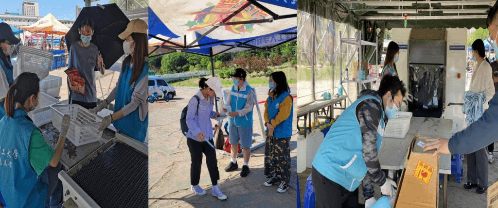 服务过程中,志愿者们全程佩戴口罩、身着志愿者制服,严格按照疫情防控要求,对进入快递点取件师生进行引导、在每一个入口提醒取件人佩戴好口罩,对每一个包裹进行全方位、无死角的消毒,力争把各项疫情防控措施做实做细,确保疫情防控无死角、无遗漏,严格阻断寄递渠道疫情传播。