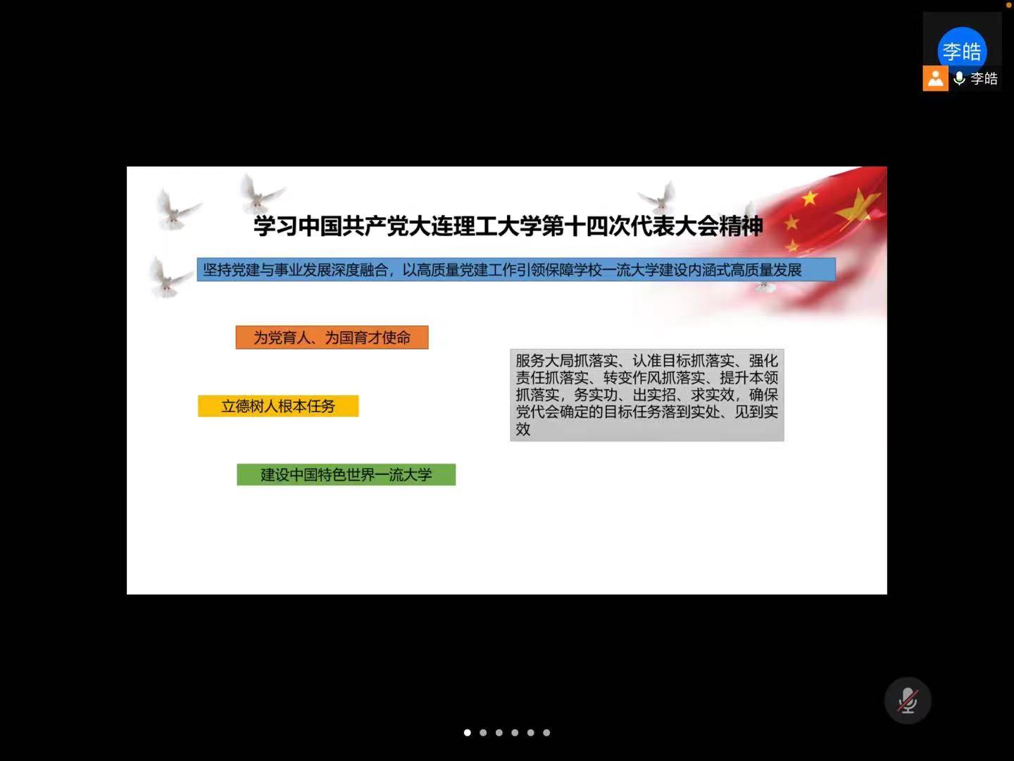 会议第二项,支部书记带头进行学校第十四次党代会精神宣讲,进一步落实大连理工大学第十四次党代会提出的“解放思想、改革创新、追求卓越、跨越发展”十六字方针,以积极饱满的姿态迎接党的二十大胜利召开。