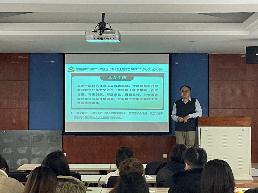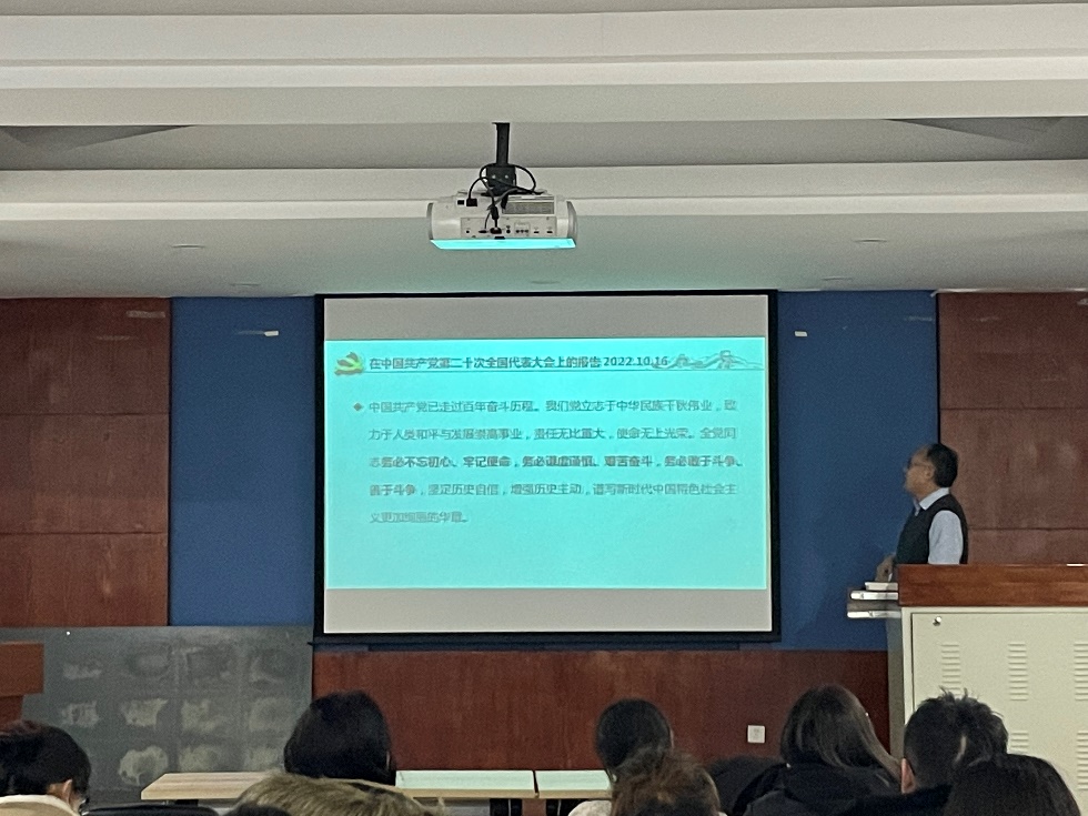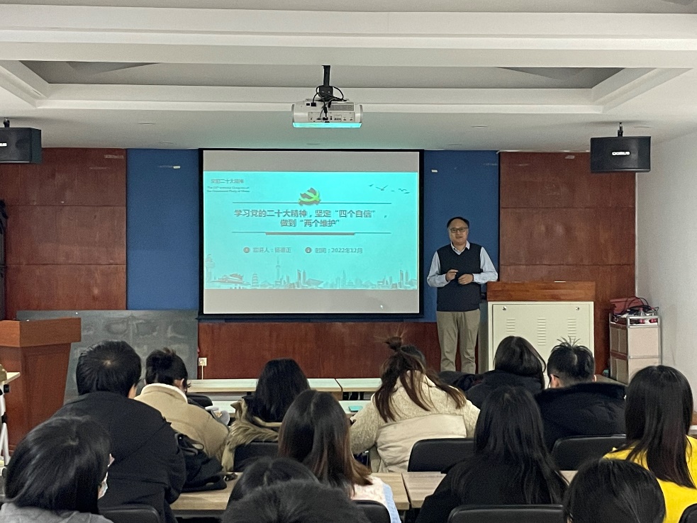 中国共产党第二十次全国代表大会于10月16日至22日在北京举行。为深入学习宣传贯彻党的二十大精神,按照学院党委部署,硕博等离子体第一学生党支部于2022年12月6日19:00在开云手机站登录入口322会议室举行主题党日活动,特邀开云手机站登录入口副院长杨德正老师为支部讲授《学习党的二十大精神,坚定“四个自信”、做到“两个维护”》的主题党课。本次主题党课的参与人员为全体党员同志、支部发展对象和入党积极分子。