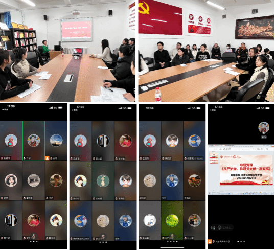根据党支部发展党员工作计划,经上级党组织预审同意,开云手机站登录入口硕博光学学生党支部于2023年12月20日晚上6点在物理楼422及腾讯会议召开 “深化全面从严治党,推进一融双高”专题党课学习暨预备党员转正大会。大会主要内容包括为学院党委副书记于艳敏老师带领支部党员集中学习“深化全面从严治党,推进一融双高”专题党课,讨论闫荣同志和张硕同志转正。会议由党支部书记吕拓同志主持。