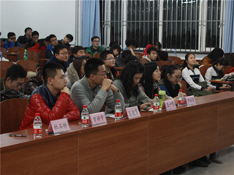 活动开始,由主持人刘昶简单介绍了杜石桥、王一鸣及王凌霄三位同学的优异成绩,随后即是三位同学对于自己学习成长经历的经验交流。荣获多项奖学金并在众多领域成绩突出的杜石桥首先向大家介绍了自己改变消极态度,积极学习并最终取得各方面成功的经历,鼓励大家端正学习的态度,战胜自己心里的阴影。荣获多项奖学金的王一鸣通过介绍自己在学习和发展道路上的成功经历,讲述多种处理问题和突破自我的有效方法,鼓励大家突破自我,向更高处发展前进。荣获多项奖项及荣誉称号的王凌霄阐述了自己对于学习的真正意义以及当今学子在学习过程中普遍存在的盲点和疑惑的看法,鼓励大家找到真正适合自己的学习目标和方法,并找到自己学习的真正目的所在。在此之后,三位同学又认真回答了在场观众的问题,对大家的疑问均提出了独到的见解。