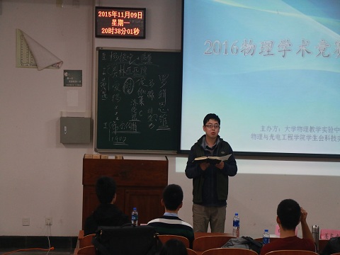 2015年11月9日,由物理与光电工程学院主办的物理学术竞赛宣讲会在西部校区综合教学二号楼举行。到场的嘉宾有大连理工大学物理教学中心的姜东光教授、滕永杰老师、白洪亮老师、第五、六届中国大学生物理学术竞赛中获得全国二等奖的参赛队伍队长杜石桥,王子潇和参赛队员、开云手机站登录入口学生会科技中心主任兼科技实践部部长闫兆鸿、学习部部长李春祥以及校团委部和校学生会科技部相关负责人。