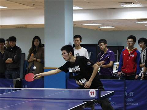 上午,比赛场馆已经站满了前来比赛和观战的人。我院运动员们蓄势待发,迎接即将进行的团体赛。团体赛的规则是每队选出五名队员进行单打比赛,总分先达到3分的队伍挺进下一轮。我院第一轮抽到的竞争对手是人文学部。虽然在第一轮的女单比赛中我院选手发挥欠佳以1:2的比分负于对手,但在随后的三场比赛中我院选手沉着应战,纷纷战胜了各自的对手,以大比分3:1轻松晋级到了下一轮。第二轮我院的对手是卫冕冠军建筑与艺术学院,面对强大的对手,我院选手都做好了放手一搏的打算,并在前四局与对手以比分2:2打平,把对手拖入了决胜盘。然而在决胜盘,我们选手未能创造奇迹,止步于半决赛,最终获得了团体比赛的三等奖。