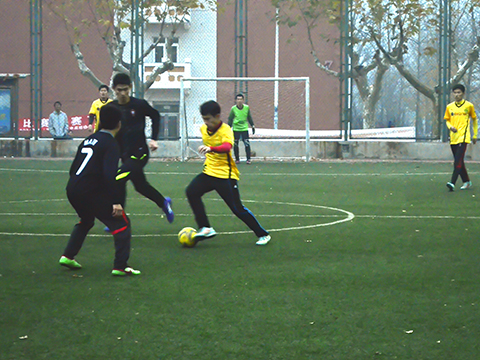 下半场,数学学院重新调整了策略,改变了打法。很快,物理后卫出现失误,数学前锋迅速把握机会,果断出脚,拿到一分。之后数学又利用一次巧妙的配合将球打入球门。在落后两球的情况下,开云手机站登录入口不仅没有丧失斗志,反而更加的奋勇,每一个队员都积极参与拼强,形成了数次很有威胁的射门。在比赛还有十几分钟的时候,开云手机站登录入口得到一次点球的机会。经过两名队员的巧妙配合,足球径直的飞入了对方的球门。一分入账,开云手机站登录入口更有了信心。仅仅几分钟后开云手机站登录入口便又将球打入对方球门,成功扳平比分。时间所剩无几,双方也都是分秒必争,最后几分钟的比赛显得更加激烈紧张。但最终2:2的比分延续到比赛结束。但因数学学院积分领先,物理队未能成功出线。