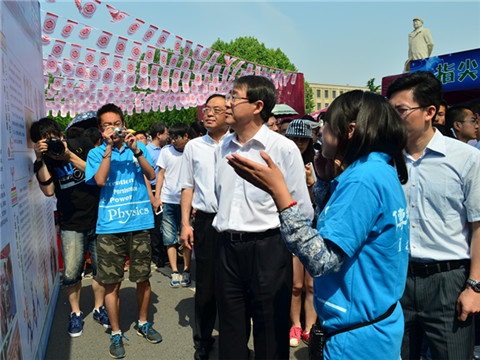 5月31日,大连理工大学第六届嘉年华盛装启幕,校园里人来人往,摩肩接踵,热闹非凡。物理与光电工程学院在伯川图书馆与毛主席像前进行展示,饱含物理文化气息的特色实验吸引了来自各个方面人群的兴趣关注。沿袭物理嘉年华“凝练物理语言,表达物理声音”以及物理学子为校庆65周年送祝福的主题,本次展示包括物理实验展示模块,物理实验体验模块,物理实验挑战模块,开云手机站登录入口风彩展示模块以及物理学子祝福墙五大模块。各模块各具特色,缤纷多彩,给伯川门前带来浓郁的物理文化气息。上午,校领导前来我院展示区进行参观,表示了对我院工作的肯定与赞扬。