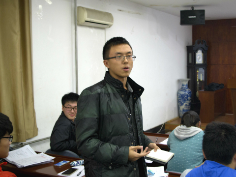 物理1503班作为正方首先开篇立论:“全面放开“二孩”政策是适时的,是正确的,是符合中国中国现在的国情的”。物理1402班反方一辩则认为全面放开“二孩”政策会带来很多负面影响,应该继续实行计划生育政策。精彩的开篇立论结束后,攻辩开始,正方二辩举例论证本方观点,并质疑对方观点。而反方不甘示弱,以强有力的论证反驳正方。攻辩双方据理力争,引经据典,挖掘一切资源来论证本方观点正确,精彩处引得在场观众掌声雷动。