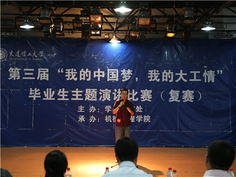 5月20日下午,大连理工大学第三届“我的中国梦,我的大工情”毕业生演讲比赛(复赛)在大服楼五楼舞厅隆重举行,本活动由大连理工大学学生处主办,机械工程学院承办。演讲台上,来自各个学部学院的选手激扬陈词,奉献了一场精彩绝伦的比赛。物理与光电工程学院派出王浩然和孙长鹏两位同学参与比赛,两位选手用自己独特的演讲深深的吸引了现场的观众及评委们。
