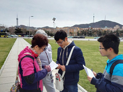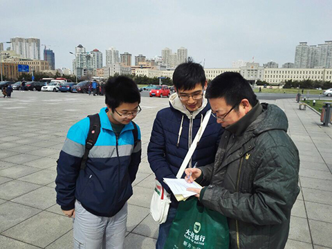 “啄木鸟出校园”活动参与人员共分为八组,每三人一组,分别负责采访,记录,拍照三个环节,同时辅以问卷调查。每位同学都各司其职,认真配合和协作。活动进行伊始,每组都被分配了不同的地点进行调查,如黑石礁,中山广场,人民广场等人员繁杂地区。虽然天气阴沉,寒风凛冽,为采访带来了很大困难,但是各位同学积极克服了环境造成的困难,完成了组织交与的任务。在接下来的环节中,支部工作小组对活动回馈的信息进行了统筹整理,认真研究,得出了一些关键性的结论,同时提出了一些问题,活动很有收获。在活动过程中,有些小组效率非常高,团队协作意识强,配合默契,引得其他小组纷纷学习效仿。