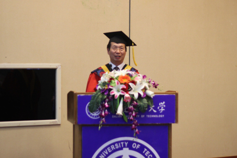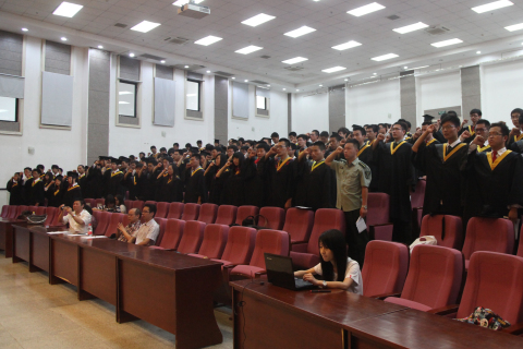 典礼最后由赵明山院长致欢送辞。赵院长首先回顾了这四年学院各方面的发展与进步,同时介绍了学院今后的科研及工作重点。而后赵院长语重心长地教育在座的毕业生,希望同学们都能铸就辉煌的未来,但在“成才”之前,能够真正“成人”。他说:所谓“成人”,关键在于有理想,要有“天下兴亡,匹夫有责”的使命感。所谓“成人”,关键在于重道德,树立正确的人生观、价值观和名利观。所谓“成人”,关键在于能否坚持,偶有成功,决不是得意自满的资本,倘遇困境,也不是气馁放弃的理由。最后,赵院长告诉毕业生,今后学校会一如既往的支持大家,学院永远是大家的坚强后盾,希望同学们能常回家看看。赵院长富有哲理的一番话仿佛2013届毕业生大学的最后一堂课,这堂课会让毕业生们受用终生。