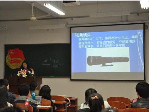 培训开始时,柴玥老师首先向大家提出了一个问题,即“新闻是什么”。紧接着,柴玥老师从新闻的定义,构成要素以及流程这三个方面向大家介绍了新闻的基本概念。随后,她为在场的同学们详细地阐述了新闻采访与写作的方法以及技巧,并一再地强调写作应当打破时间的限制,站在受众的角度看问题,而不是记流水账。最后,柴玥老师为大家介绍了新闻摄影的相关要点以及单反相机的使用方法,并为同学们展示了多张精美的摄影作品。在场的同学们被柴玥老师诙谐幽默的讲解语言所吸引,个个聚精会神。