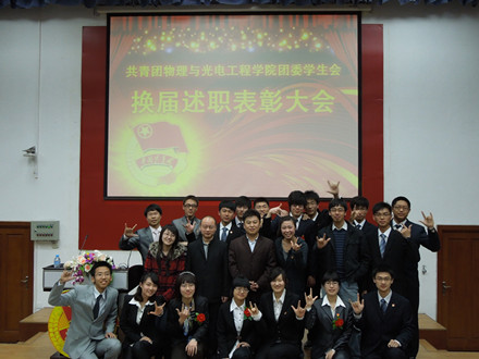 至此,2012年共青团物理与光电工程学院委员会述职表彰换届大会圆满结束。本次大会的召开标志着新一届团委学生会正式产生,相信他们能够继承优良传统,不断创新,更好的服务同学,引领同学,开启学生会的新篇章!