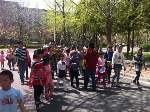 10点刚过,在简单介绍并合影后,小天使们在志愿者的带领下走进了刚刚过了66岁生日的大连理工大学。三十几位小天使一路好奇着大学到底有多大,一路观赏着校园造型各异的建筑与明丽的春景。绕过刘长春体育馆,路过音乐喷泉,穿过主楼,转过综一,走过彩虹桥,最终来到A305教室细细感受大学。