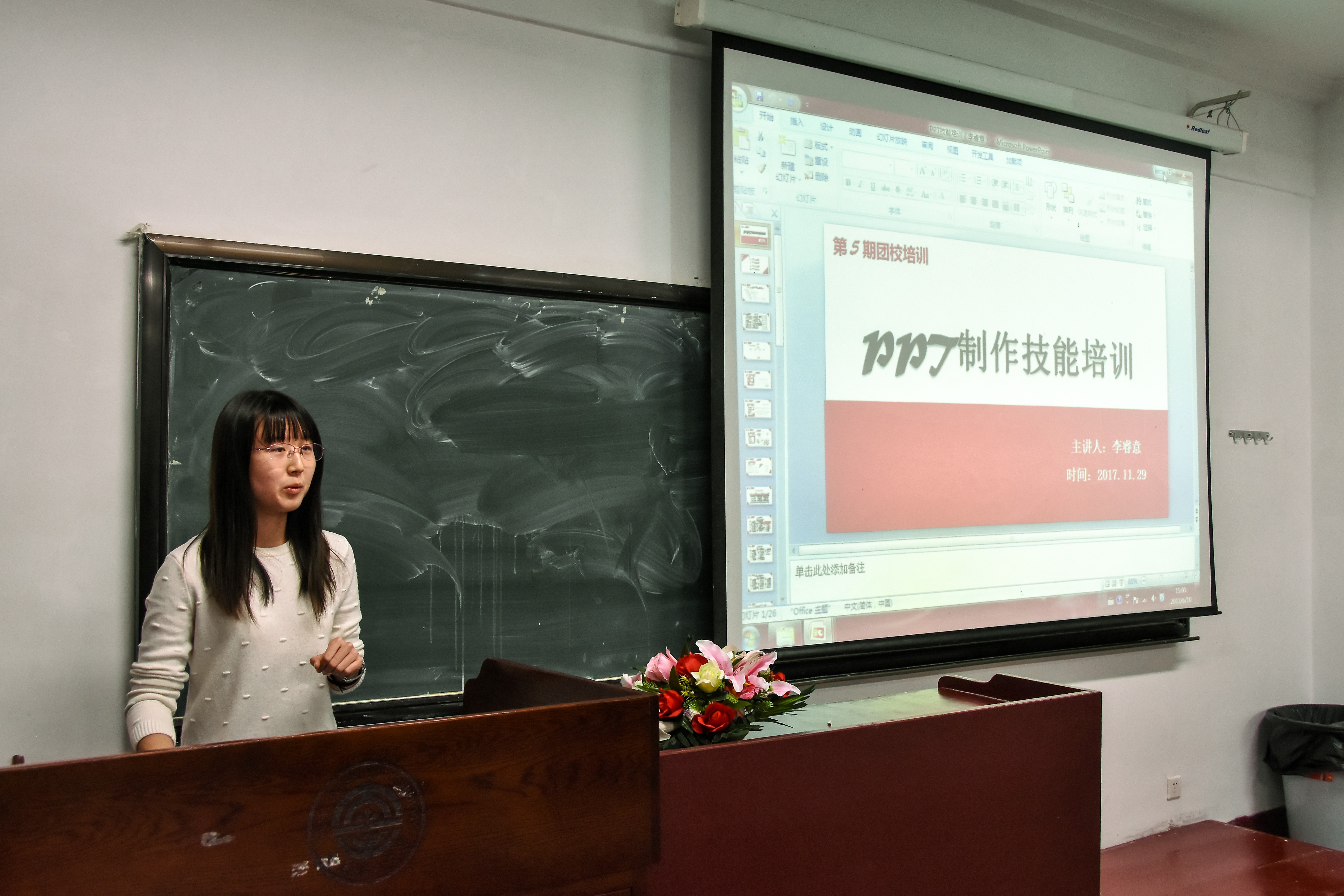 11月29日晚6:30,为满足同学们对PPT制作和公文写作技能的需求,近一步提高同学们的工作水平和服务同学的能力,开云手机站登录入口于机械馆召开第五次团校,并对相关方面技能进行培训。出席本次团校培训的嘉宾有团委常务副书记李睿意,实践部部长罗英,以及实践部副部长刘璐。