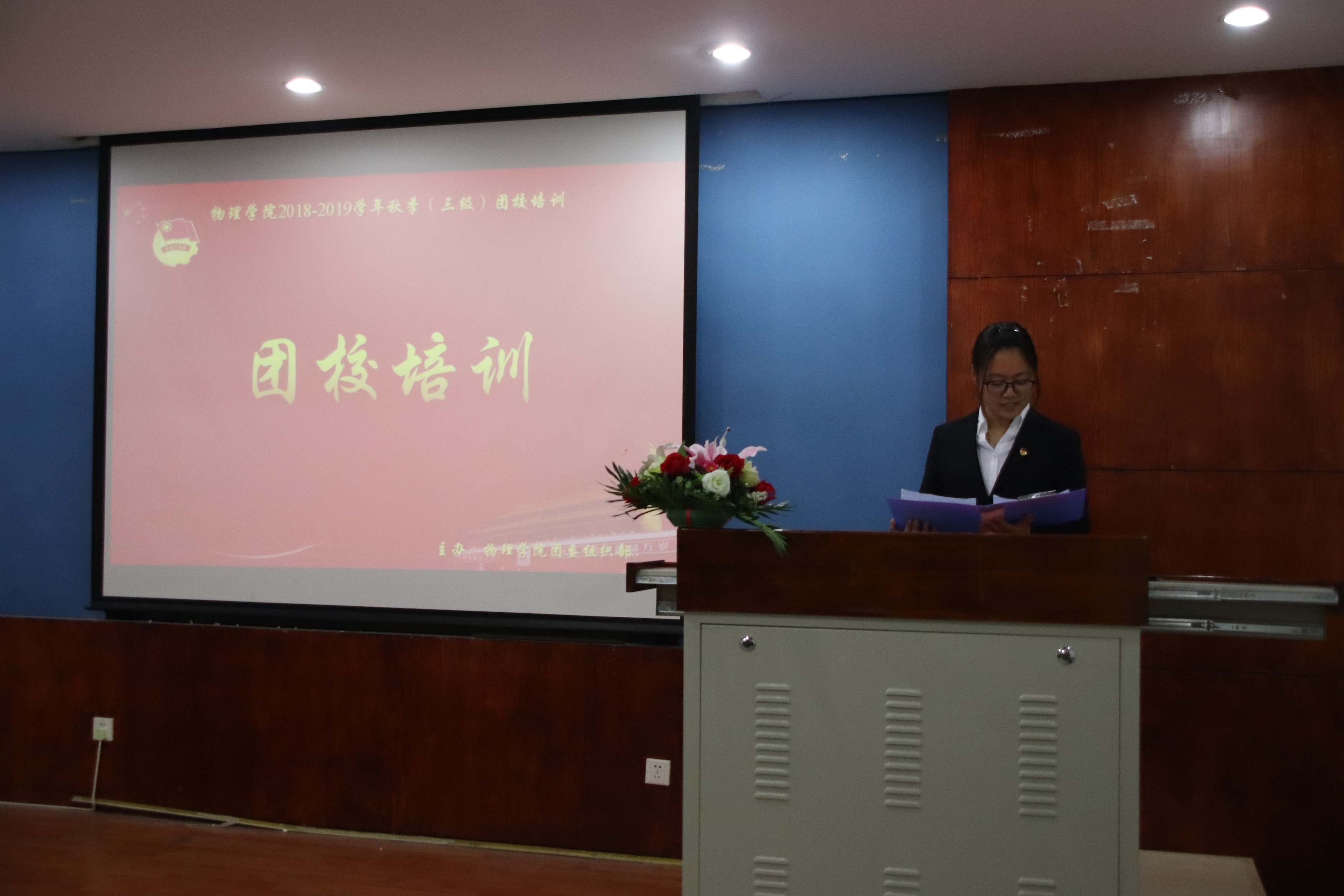 为推进实践月主题活动顺利开展,并响应学校号召,积极建设活力团支部,我校开云手机站登录入口于11月19日晚上六点在物理系楼322教室开展2018-2019学年秋季第四期团校培训。出席本次培训的嘉宾有学生会主席兼团委副书记边于,团委常务副书记刘禹君,团委实践部部长李睿,团委组织部部长何浩。