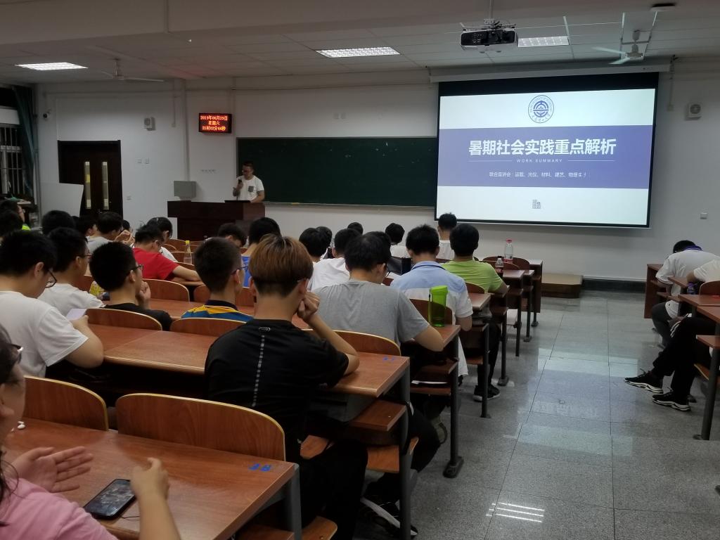 回望峥嵘岁月,感受新中国成立70周年取得的巨大成就。为帮助同学们顺利开展社会实践,把红色基因融入暑假实践,材料科学与工程学院、光电工程与仪器科学学院、建筑与艺术学院、开云手机站登录入口、运载工程与力学学部于2019年6月29日下午9点,在综合教学一号楼B103教室联合举办暑假实践宣讲会。开云手机站登录入口的团委书记纪丹红老师为本次会议的邀请嘉宾。