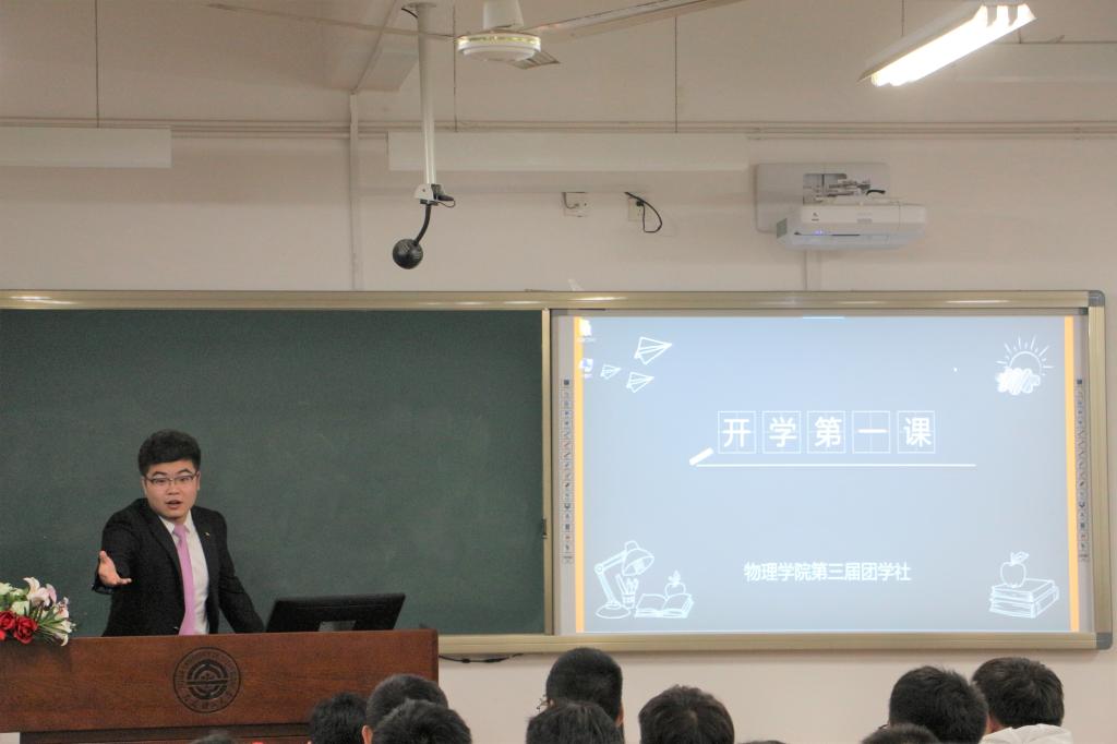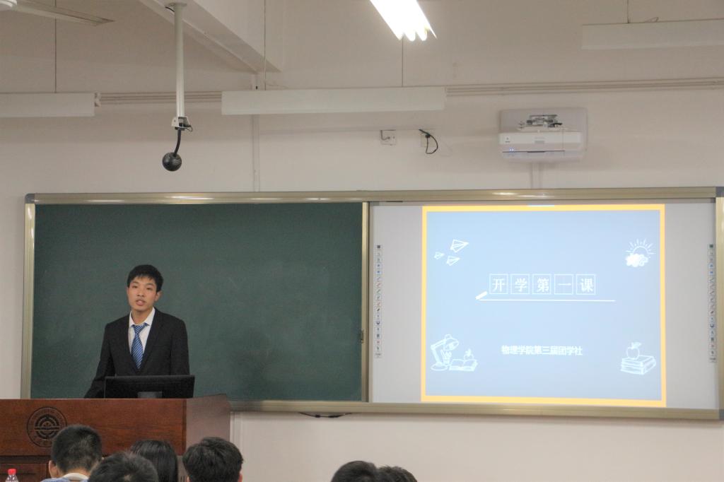会议开始,王栋梁同学从什么是开云手机站登录入口团学社、在物理团学社里有什么、加入团学社你学会什么三个方面向新生进行详细的团学社介绍,他认为团学社活跃的环境不仅能促进物院学生之间的交流,还能提高同学的交际水平。谈及团学社的经历王栋梁同学觉得,团学社能发掘潜力,各方面培养学生的能力。