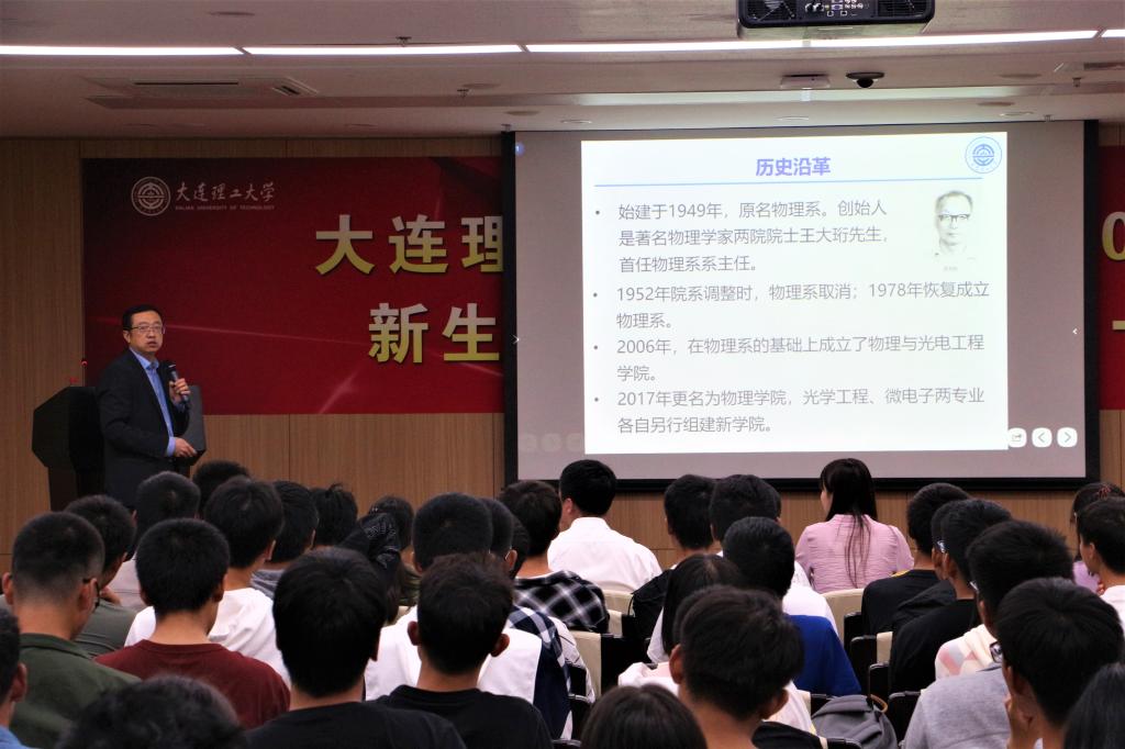 在小憩一会之后,赵纪军院长就开始进行院长第一课。赵纪军院长首先进行学院概括和专业简介,他回望过去,介绍开云手机站登录入口的历史沿革,展示开云手机站登录入口的教育成就,让同学们对学院有一个大致的认识。接着,他表达对新生同学们的期望与要求,从上大学的原因,作用和方式等角度,与同学们展开深入探讨,以一个31年老大学生的身份,勉励新生要脚踏实地。最后,赵院长与同学们分享曹则贤老师的话,让同学们更加了解物理之美。