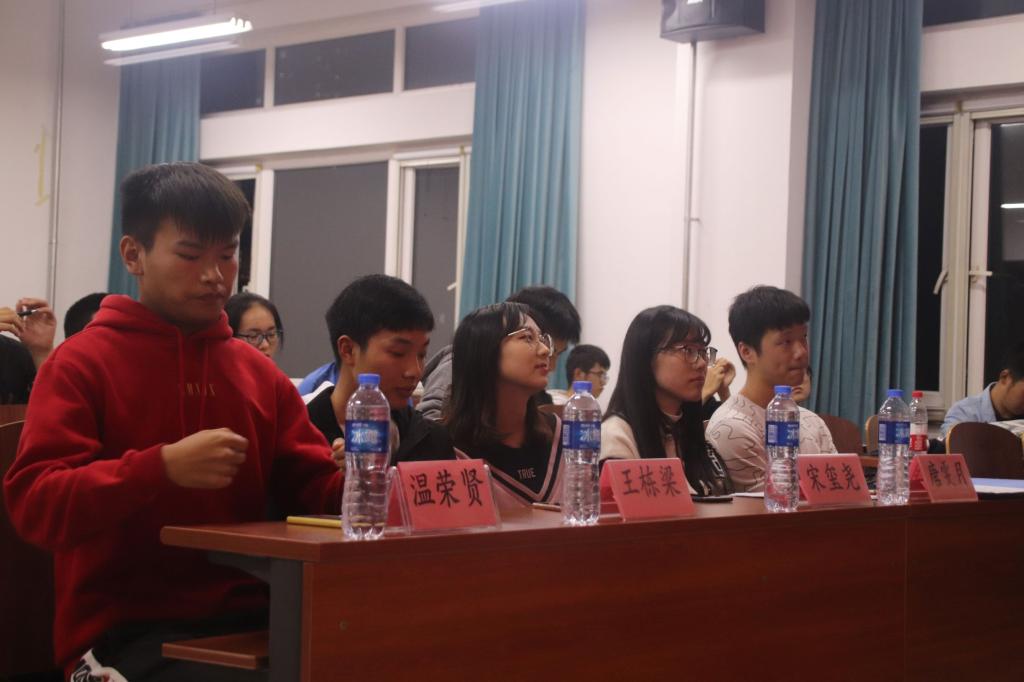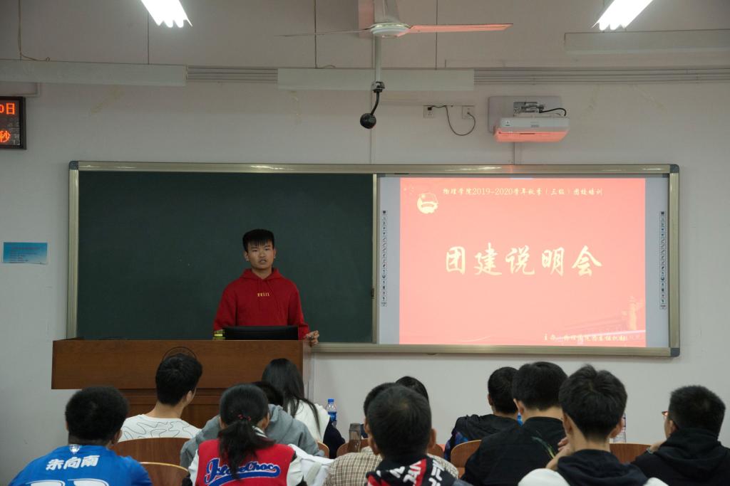 说明会内容分为四部分,分别是基础团建内容,团建基本要求,团建评分方法和注意事项。在说明会开始前,温荣贤先上台为同学们进行说明,强调团建活动的重要性。