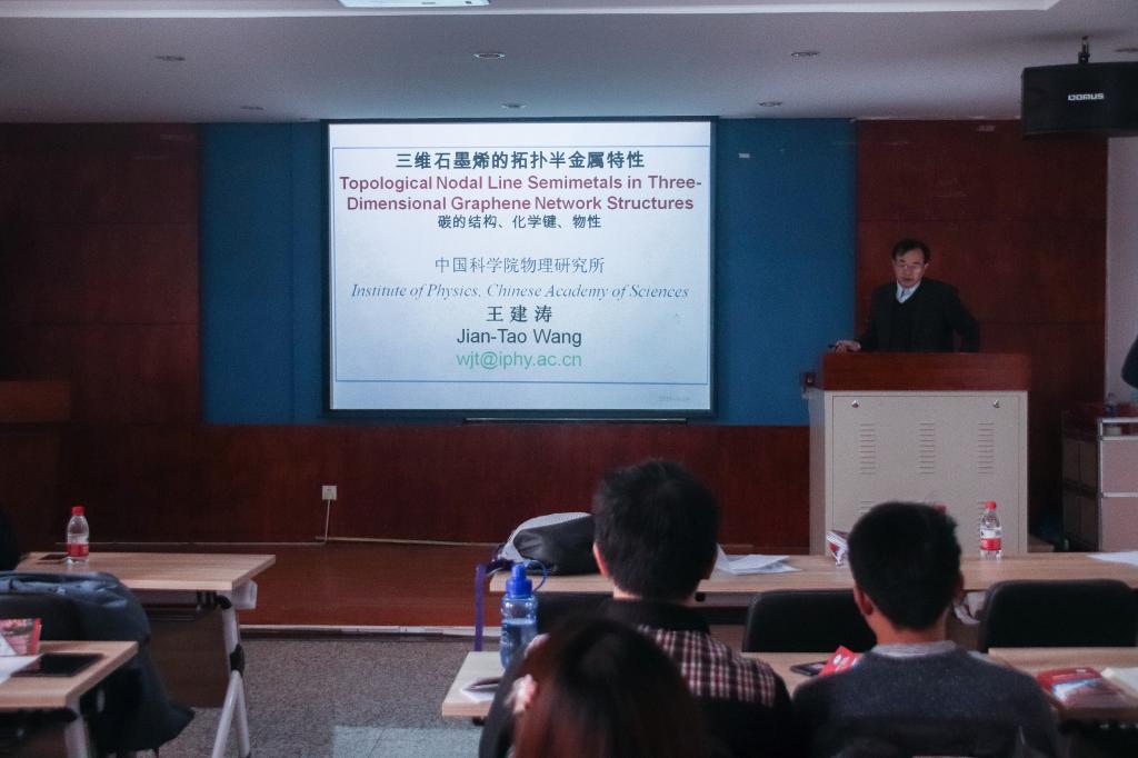 此外,本次会议也旨在拓宽优秀学子科研视野。三名嘉宾分别根据自己的研究方向,为严济慈班学生带来精彩的学术报告。王建涛研究员从碳原子的物理特性入手,着重讲解共价键和价健结构,深入浅出地解释石墨到金刚石的相变过程,并解释相关物理特性的变化。许秀来研究员从摩尔定律展开,讲述什么是量子效应后,再从量子入手,讲解量子通讯、量子计算等应用。王烨华研究员则从自己的研究开始,为同学们用生动的比喻,讲述扫描隧道显微镜的多种应用,如进行金属表明修复、观察血红蛋白、了解原子磁性特征等。本次讲座后学生也和研究员积极进行交流,他们在有难度的学术问题上为同学答疑解惑。