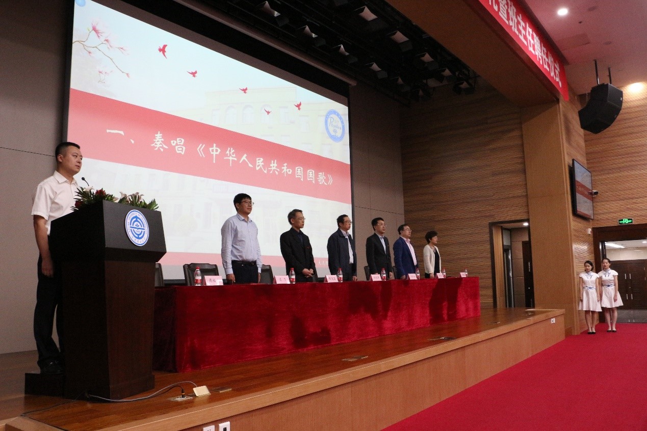 大会第一项全体起立奏唱国歌。当熟悉的旋律响起,师生们庄严地咏唱国歌,表达着自己的爱国之情。合唱结束后,由王正汹书记宣读开云手机站登录入口2020届班主任以及思政班主任的聘任名单。接着聘任教师郑重地接过聘书,同时也担起引领同学成长的责任。