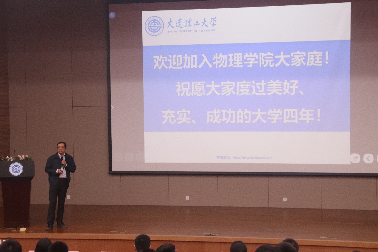 而后赵纪军院长希望同学们能够培养起对科学的兴趣,体验物理之美。他向同学们分享曹则贤老师的一句话:“物理学家是一群用公式唱歌的人”。物理学是一门基础理科专业,它既包含数学严谨之美,也有自然规律简介之美。并且赵纪军院长通过自身学习与科研经历向新生们讲述要积极体验学习知识,同时注重基础,也要重视创造知识,因为创造知识的乐趣和成功的喜悦更是难以言表。