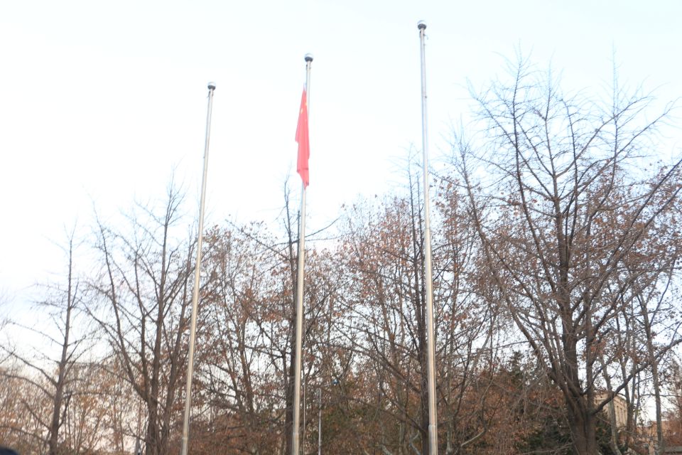 尽管已是小雪节气之后,气温转寒,但全体在场学生及工作人员不畏寒冷,迎着朝阳开展本次升旗仪式。主持人李锦璇向大家讲述新中国创建以来的种种经历,随着经济建设地不断进行,如今祖国已经收获累累硕果。身为大工学子,更应响应国家号召,以青春告白祖国,续写盛世华章。李锦璇同学的声音如春雷般滚动在广场上,升旗仪式正式开始。